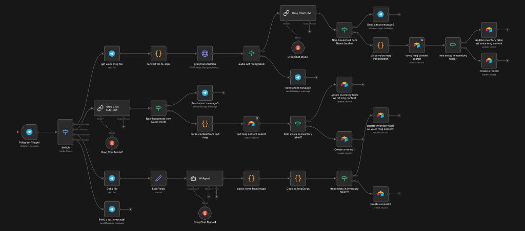 - uses LLM to parse bilingual (English/French) voice, text, image, and video message content & updates a database containing household inventory items, categories, qtys, etc. to assist with grocery planning